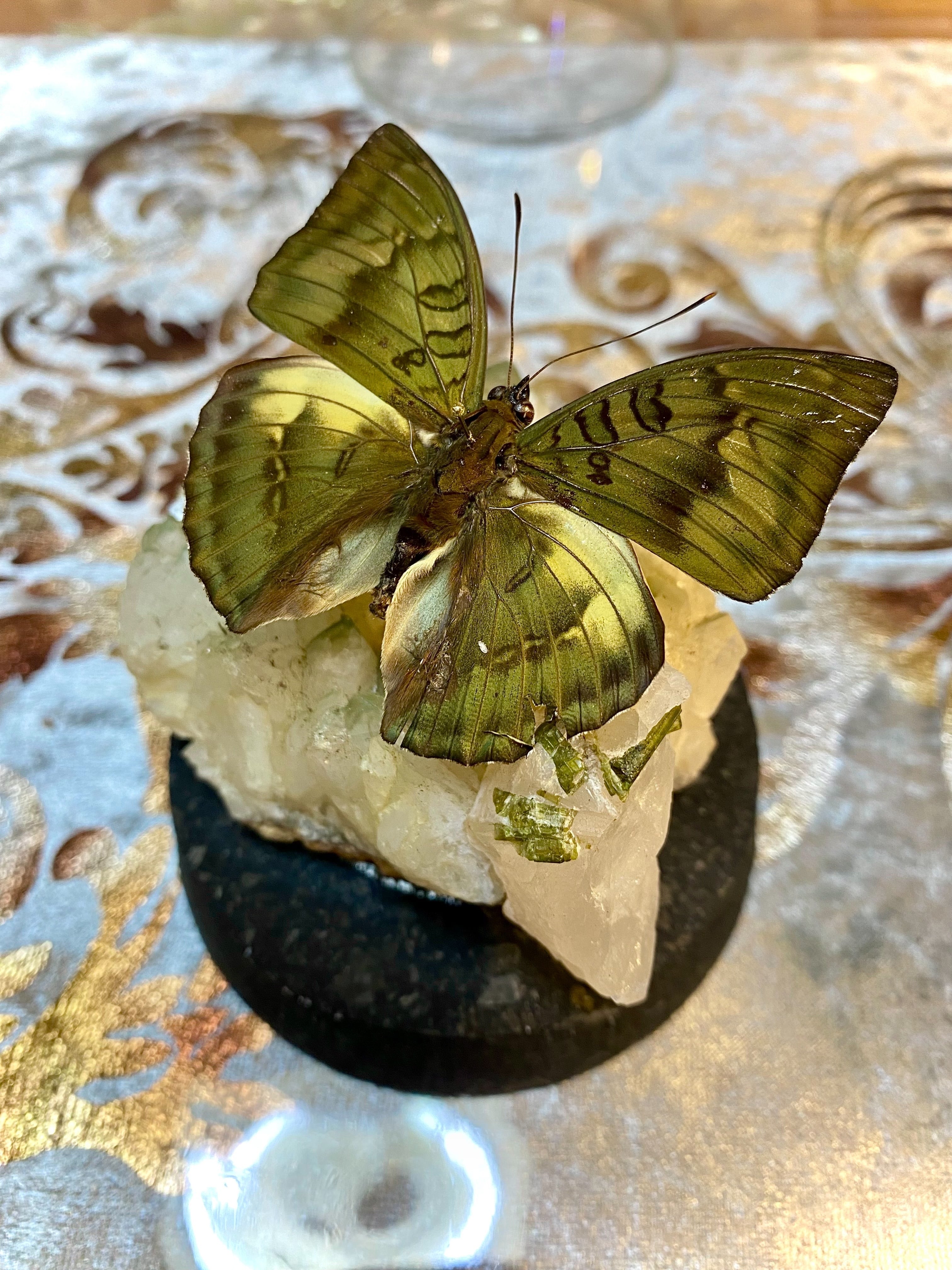 コケがむしているようにも見え、角度によって表情を変えます。ナライナズマチョウにぴったりだと思いました。