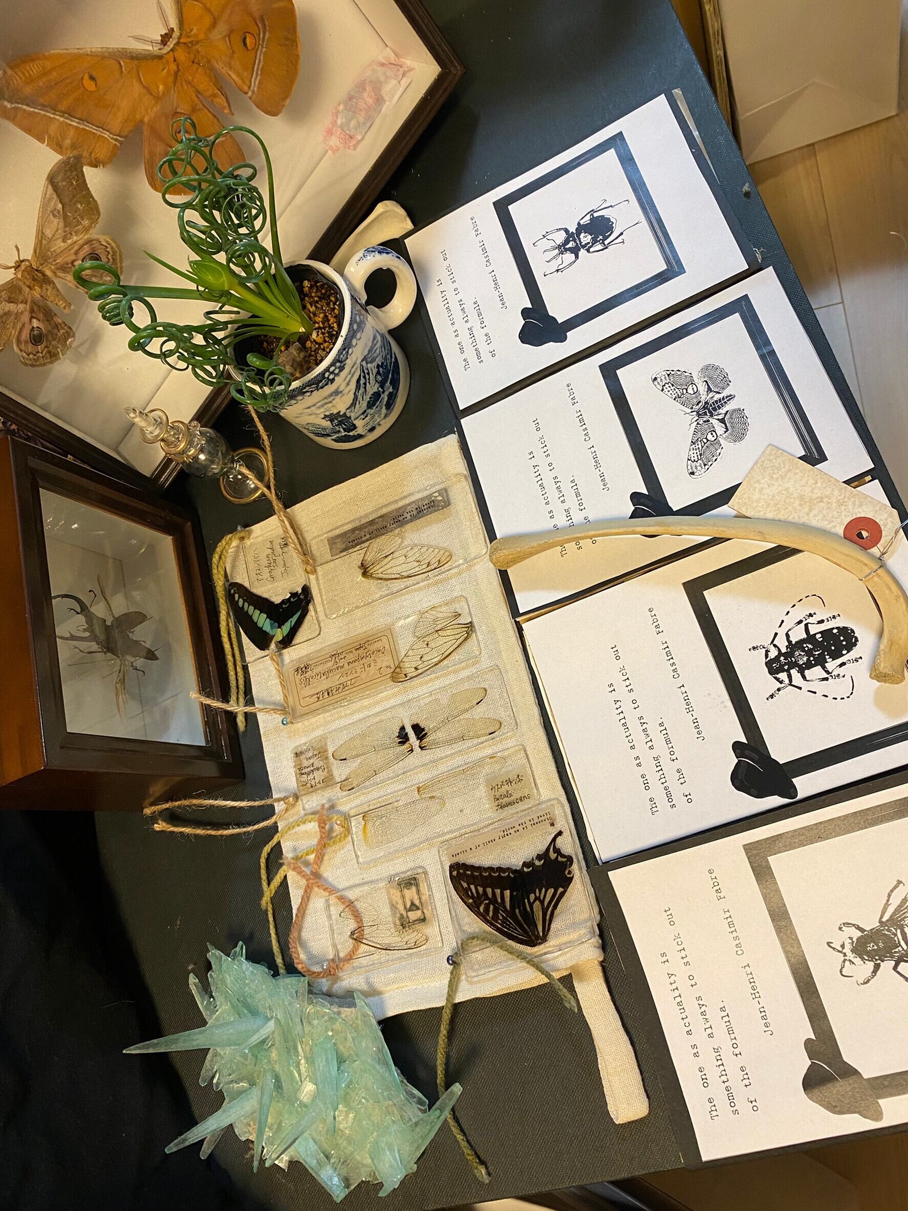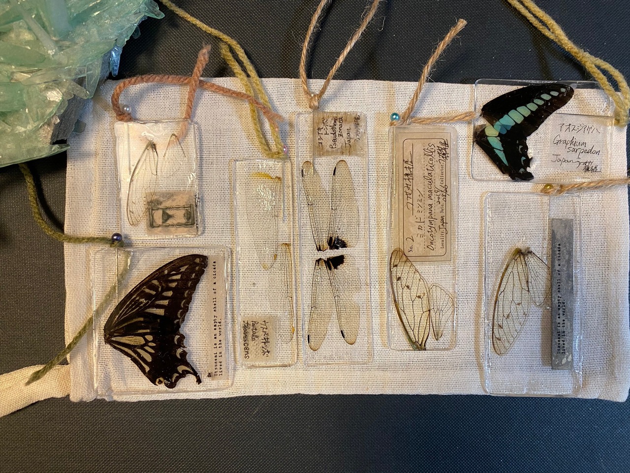 昆虫にまつわる文学本の一部を加工したミニ本に挟んでお届けします。